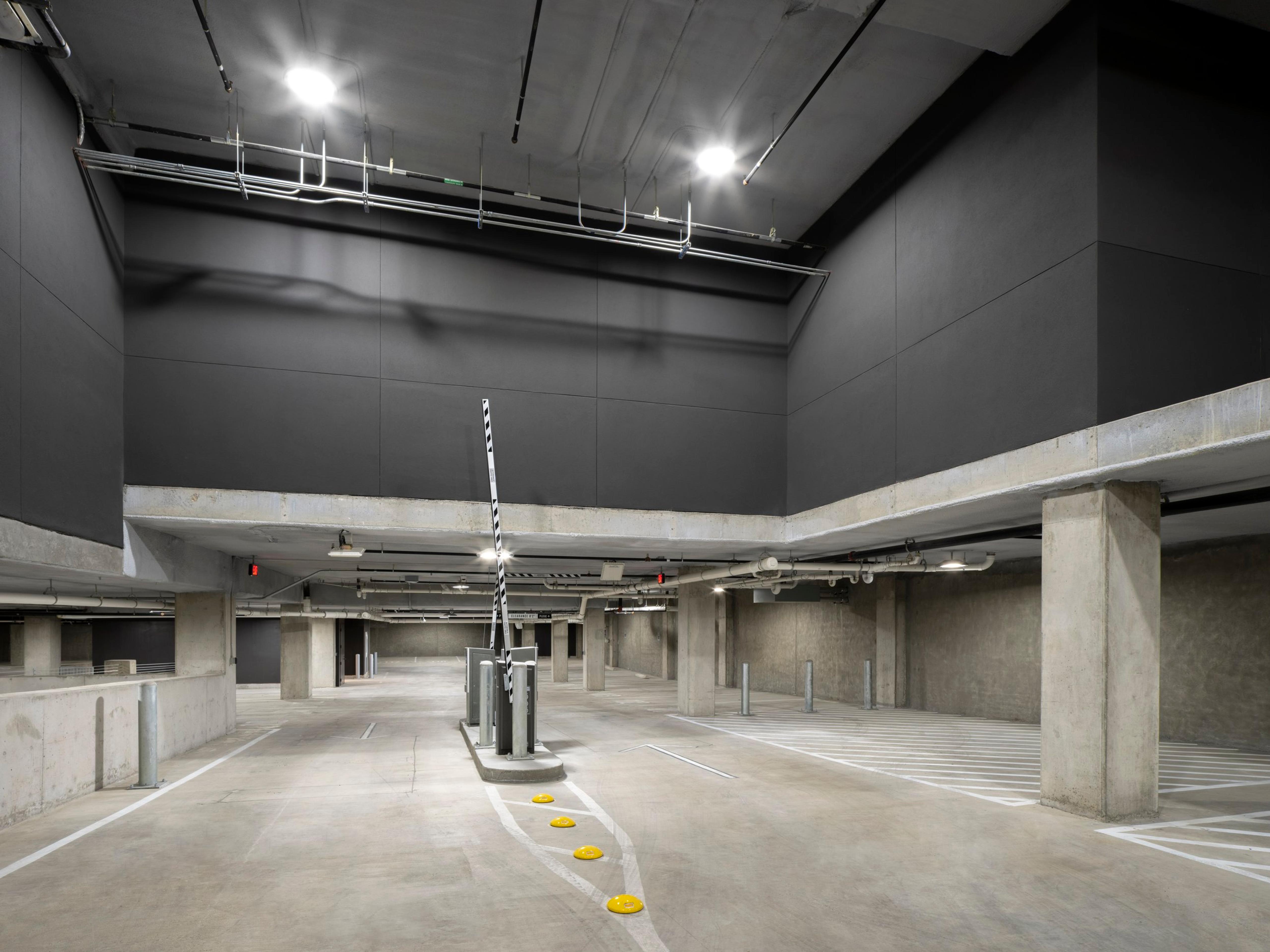 While an underground parking garage complied with the height limits, it further blended the building with the neighborhood by making the first floor pedestrian friendly. To achieve the desired number of parking spaces, the garage would need to extend 5 levels underground. To meet a tight schedule, shotcrete was used to construct the underground parking because of its fast application and short curing time, as well as the reduced amount of formwork it required. This allowed for the garage to have an accelerated schedule, keeping the project on track even with all the challenges of construction during the height of the pandemic.