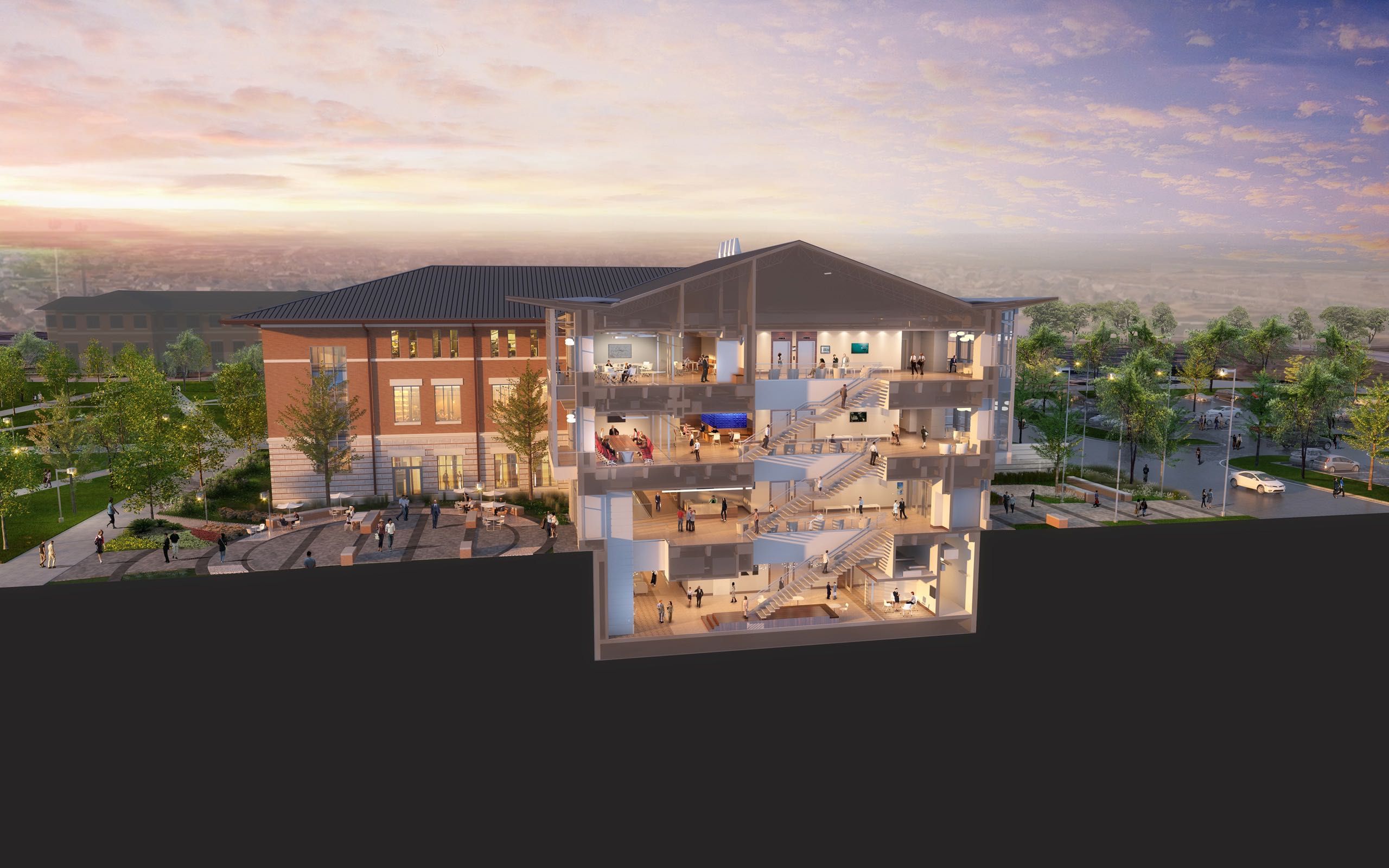 The strategy provided the needed space on the ground and upper levels to house the public clinic, educational classrooms, conference spaces, additional commons spaces and study spaces, administrative spaces, and specialized clinic and research facilities.
