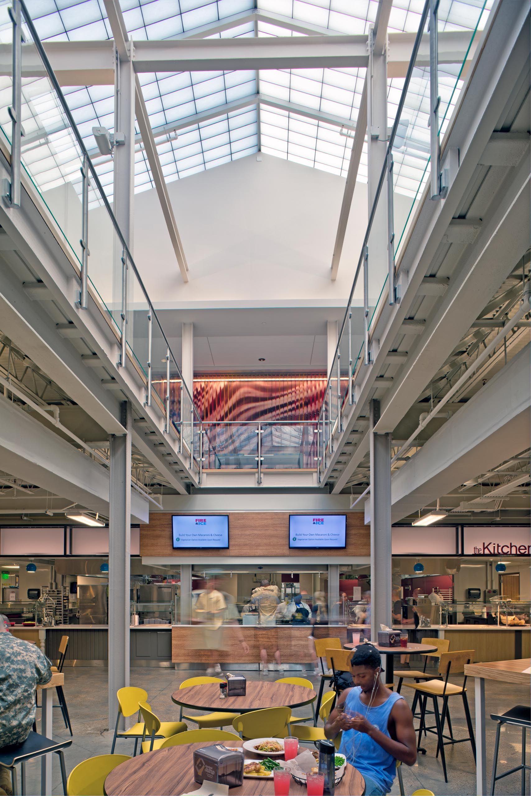 Originally built in 1971 and connected to four residence halls, the Commons has long served as an essential student services and dining facility on the south side of campus. The Commons had not been renovated since 1988, and the dark outdated building no longer met the needs of a dynamic student population. In keeping with the university’s strategic priorities and dedication to student success, we were initially engaged to conduct a comprehensive feasibility study. After evaluating whether to rebuild or renovate, our team was ultimately chosen to revitalize the Commons into a modern, inclusive, and future-focused student hub, ensuring its continued significance within the campus community.