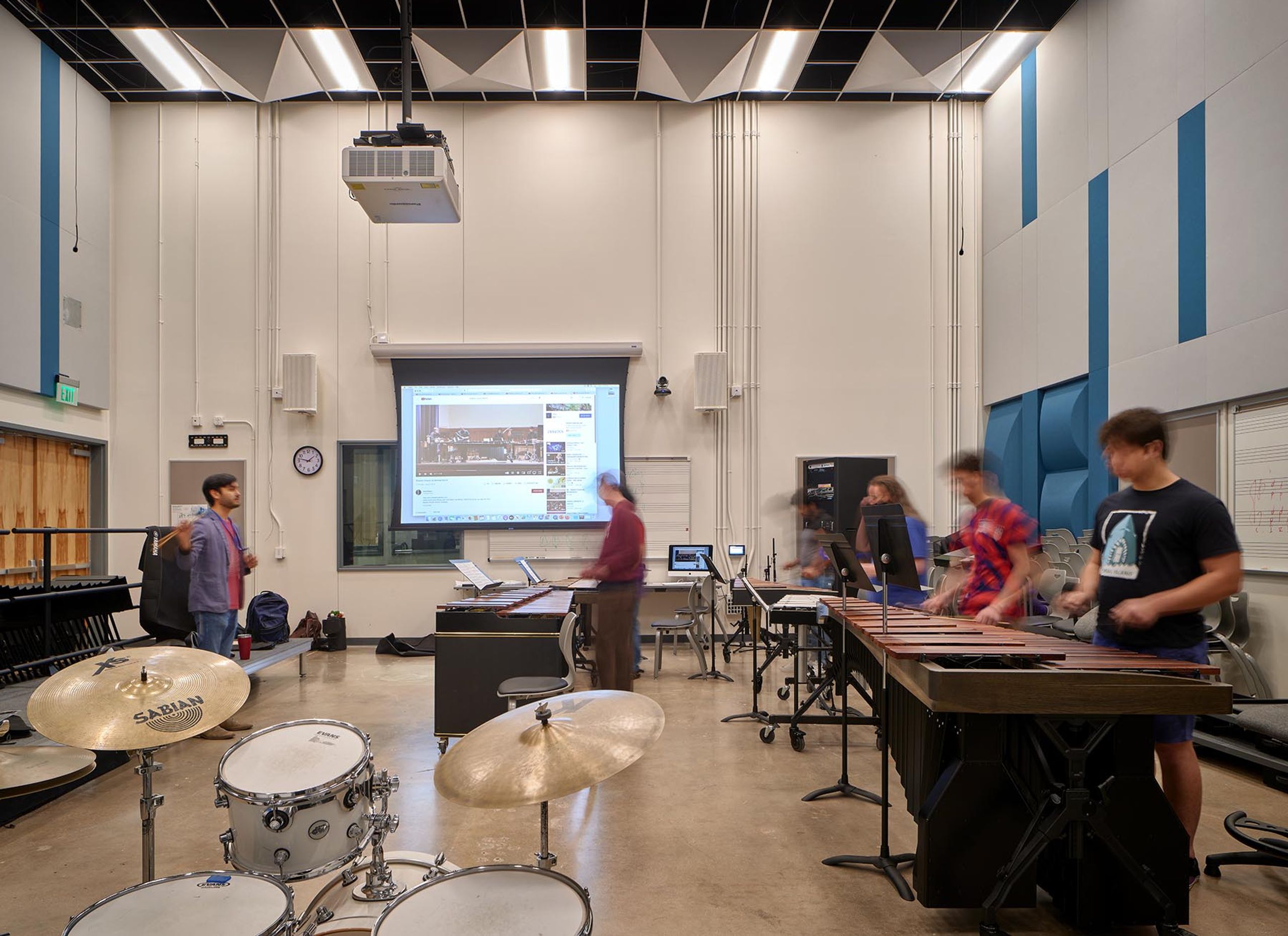 Our work on Austin Community College District’s (ACC) flagship Highland Campus provided a unique opportunity to integrate community-focused spaces alongside state-of-the-art academic facilities. Highland Phase II elevates the college’s performing arts program with a comprehensive suite of professional-grade spaces. Our team designed a proscenium theater, a flexible black box theater, backstage production areas, costume and scene design studios, a dedicated dance studio, music practice rooms, and professional-quality recording studios. These spaces give students hands-on training across acting, movement, music performance, stagecraft, lighting, sound, and costume and set design, preparing them for careers in the performing arts.